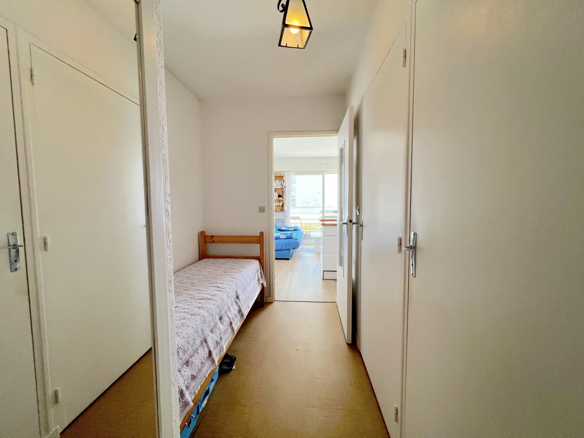 Exclusivité Appartement T2 avec cabine et vue mer, en plein coeur de La Turballe. En plein centre de La Turballe, à seulement quelques pas du port animé et de la plage, cet appartement est une véritable invitation à profiter de la côte Atlantique au quotidien. Situé au 1er étage d’une résidence avec ascenseur, il offre un cadre de vie calme et pratique, où tout peut se faire à pied. Dès l’entrée, on découvre un espace astucieusement agencé avec placard intégré, cabine indépendante pour les enfants ou les invités, et un coin nuit fermé garantissant confort et intimité. La pièce de vie, baignée de lumière grâce à sa double exposition, s’ouvre sur un balcon avec une vue latérale sur la mer et le port, idéal pour les petits-déjeuners au soleil ou les fins de journée douces. La cuisine, fonctionnelle et aménagée, complète parfaitement cet espace convivial. Une salle de bains, des toilettes séparées, et un second petit balcon côté chambre viennent parfaire l’agencement. Un garage fermé en sous-sol de plus de 17 m2 ajoute un vrai plus pour stationner, stocker ou accueillir vélos et planches de surf. Cet appartement traversant de 35,34 m2 (loi Carrez) est vendu avec deux balcons (6,40 m2 et 1,20 m2) et fait partie d’une résidence bien entretenue de 42 lots principaux, gérée par le Cabinet Macé, syndic professionnel. Charges annuelles : 1013EUR. Pas de procédure en cours. Prix : 215180EUR HAI (200300EUR hors honoraires) Honoraires de 6% TTC à la charge de l’acquéreur. R. Lourdais EI, agent commercial RSAC Nantes no 523511889 – 06 23 65 36 62 – r.lourdais@cabinetmace.com. Les informations sur les risques naturels, miniers, ou technologiques, auxquels ce bien est exposé, sont disponibles sur le site https://georisques.gouv.fr/.