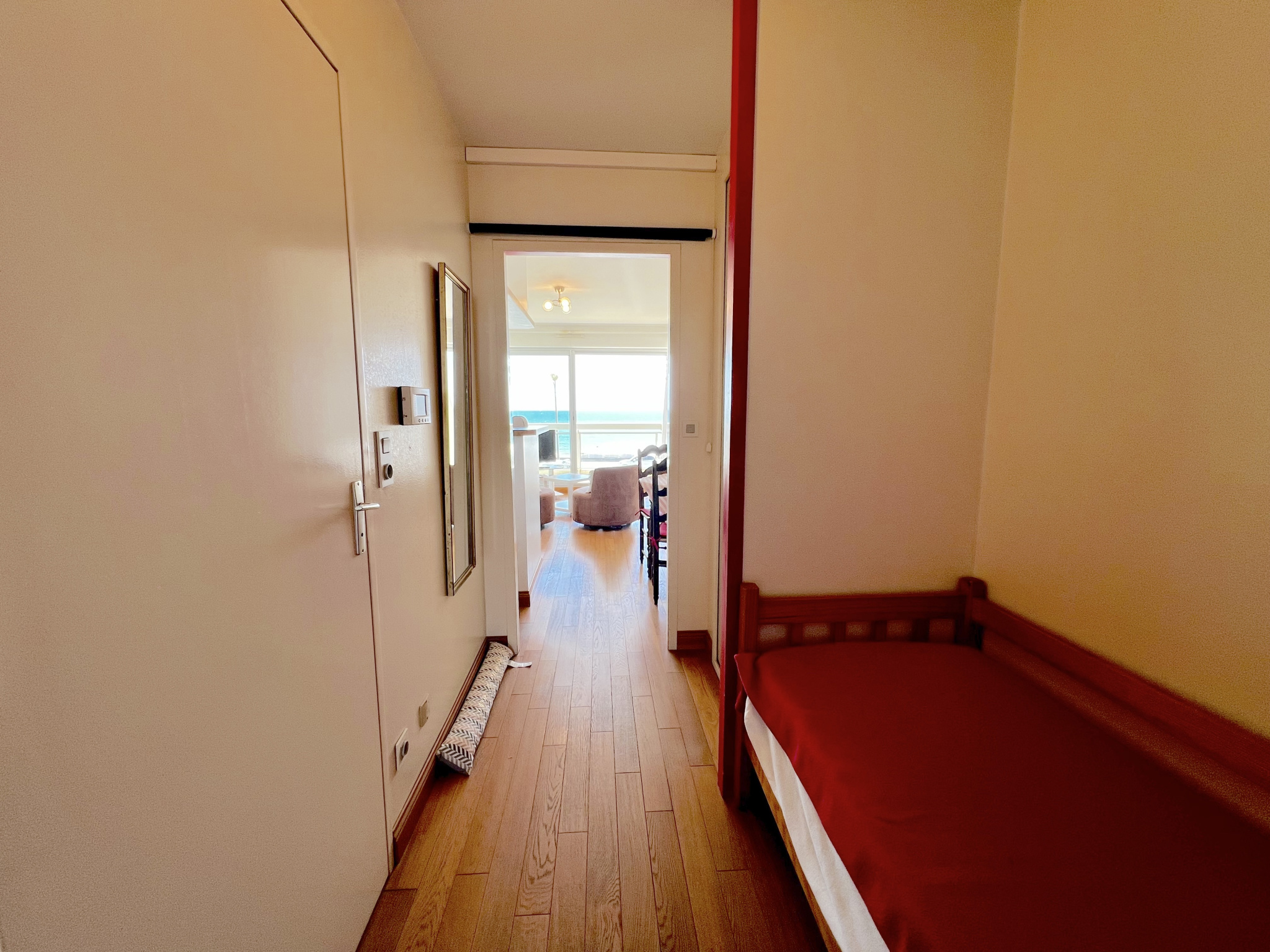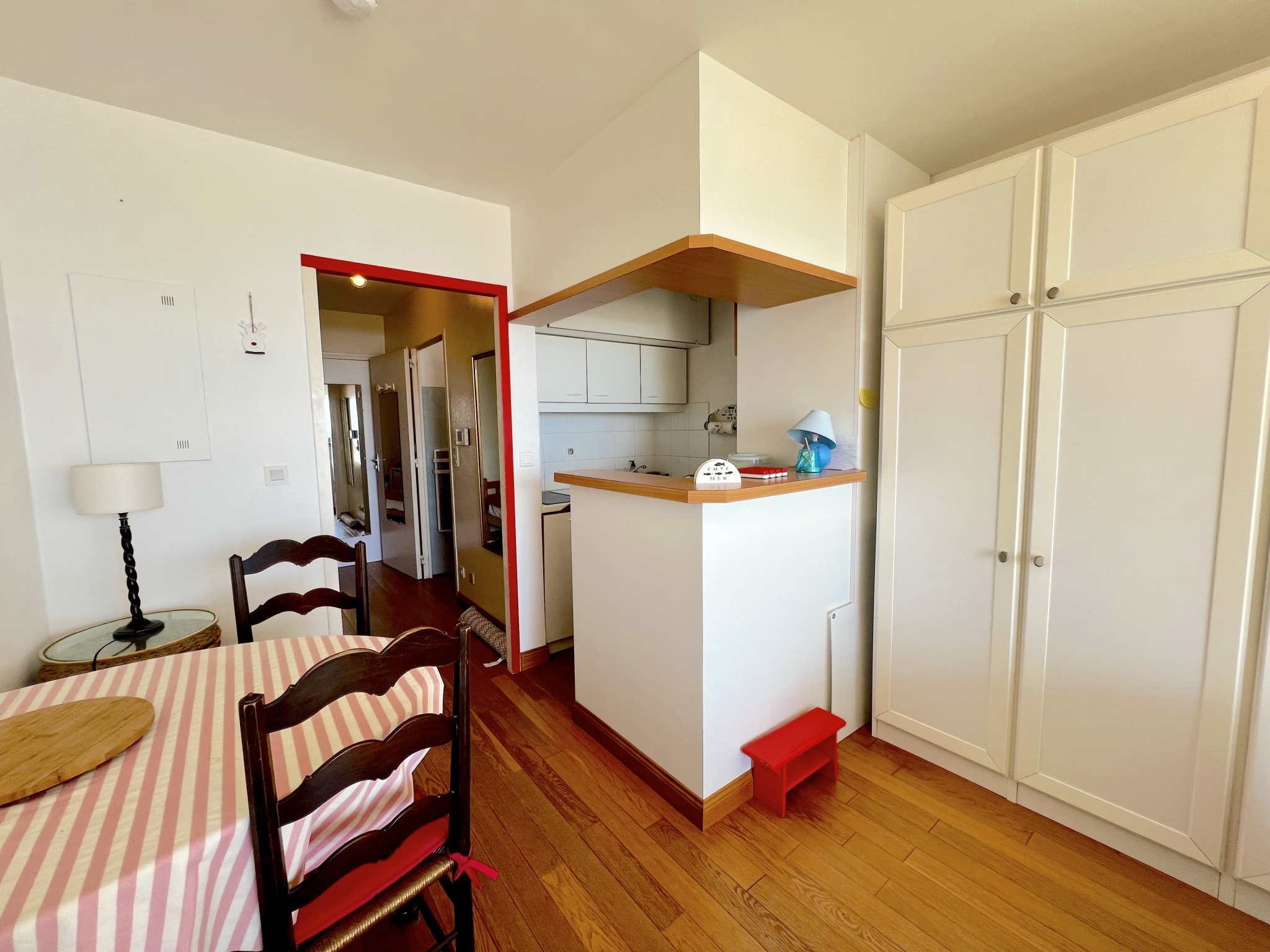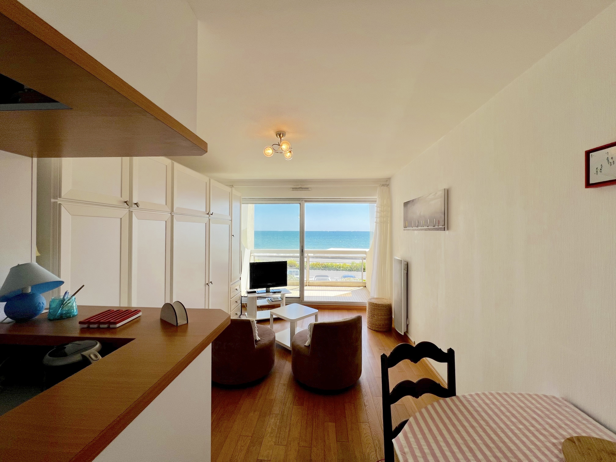 Situé sur le remblai de La Baule, à quelques pas de l’avenue de Gaulle, ce studio cabine de 26 m2 bénéficie d’un emplacement privilégié face à la mer. L’appartement se trouve au 1er étage d’une résidence avec ascenseur. La pièce principale, lumineuse, s’ouvre sur une terrasse de 6 m2 offrant une belle vue sur l’océan. La cuisine, aménagée et équipée, est semi-ouverte. Un lit escamotable sur mesure permet d’optimiser l’espace de vie. Un coin cabine, un hall d’entrée avec rangement, une salle de bains et des toilettes séparées complètent l’ensemble. L’appartement est vendu avec une place de parking privative et une cave. La copropriété compte 21 lots principaux et est gérée par le Cabinet Macé, syndic professionnel. Charges annuelles : 632EUR. Aucune procédure en cours. Prix : 232200 EUR FAI (220000 EUR hors honoraires) Honoraires de 5,5% TTC à la charge de l’acquéreur. R. Lourdais EI, agent commercial RSAC Nantes no 523511889 – 06 23 65 36 62 – r.lourdais@cabinetmace.com. Un bien idéal en pied-à-terre, en résidence secondaire ou pour un investissement locatif en bord de mer. Informations sur les risques disponibles sur www.georisques.gouv.fr