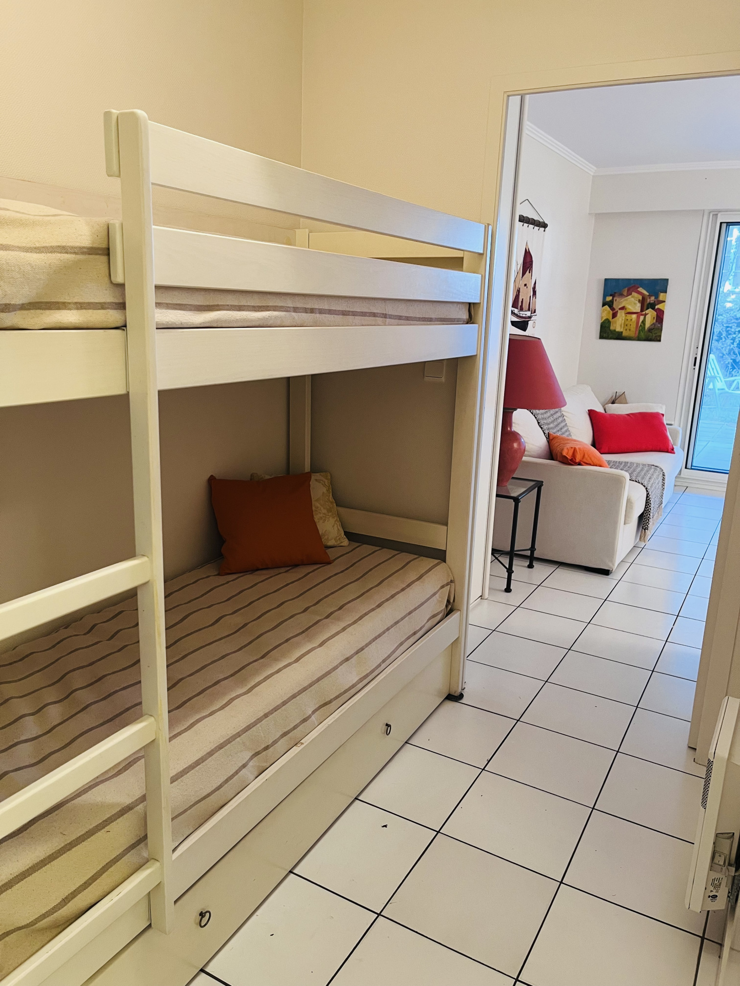 En excellent état, l’appartement se compose d’une entrée avec coin cabine, d’un séjour lumineux ouvrant sur une terrasse prolongée par un jardin privatif, d’une cuisine fonctionnelle ainsi que d’une salle de bains avec WC. L’ensemble est soigné et ne nécessite aucun travaux, offrant un cadre de vie confortable et prêt à emménager.